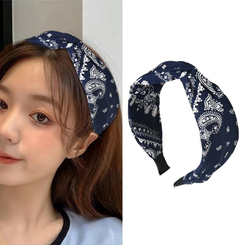 - Knot Cross Headband: Navy blue headband with white pattern, bohemian headband, fashionable and classic, vintage bandana hairband for all women and teen girls, let you look more beautiful