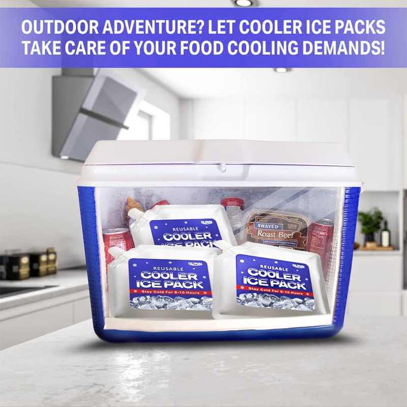 - ✔️ GREAT FOR OUTDOOR USE - Our long lasting and reusable ice packs for coolers / lunch box are compact, portable, and help maximize your cooler space. Pack more munchies for lunch box, picnics, camping, outdoor trail, or boating.