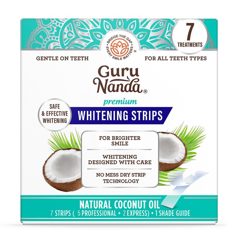 - Reveal a brighter smile with GuruNanda Teeth Whitening Strips. Our dry-strip formula combines hydrogen peroxide with soothing coconut extracts, helping to break down stains & whiten teeth.