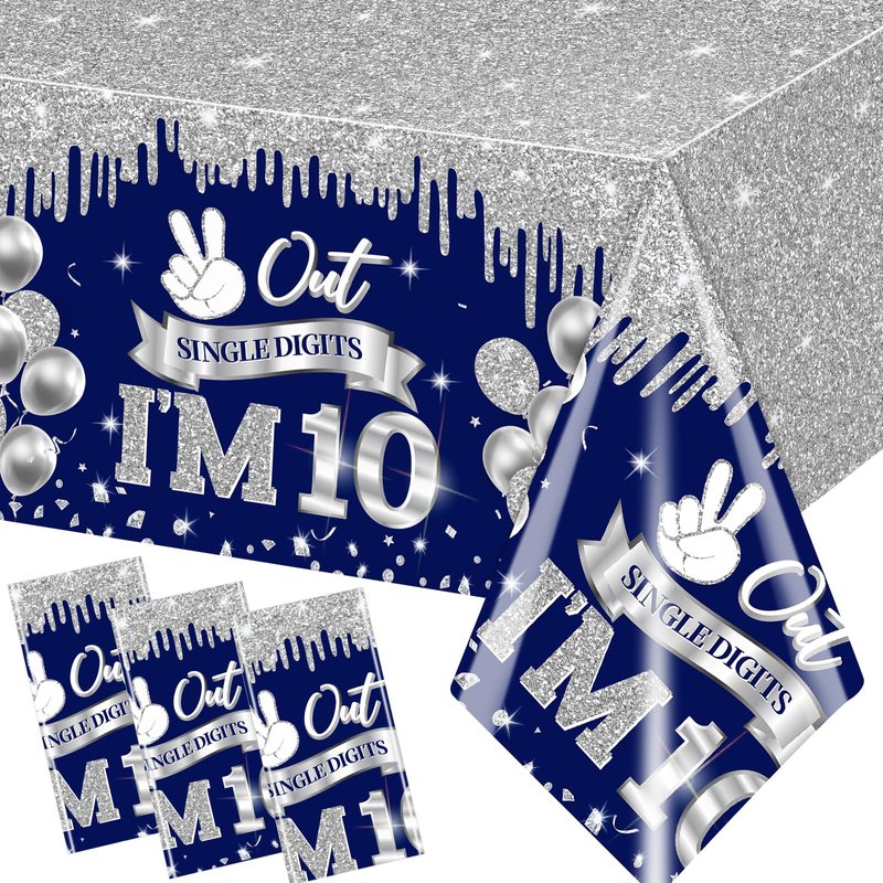 - PACKING INCLUDE:You will get 3pcs rectangular blue and sliver 10 birthday decorations for boys tablecloth.The size of each piece is about 70.8X42.5 inches, and the quantity size is enough to meet your happy 10th birthday decorations for boy and replacement needs.