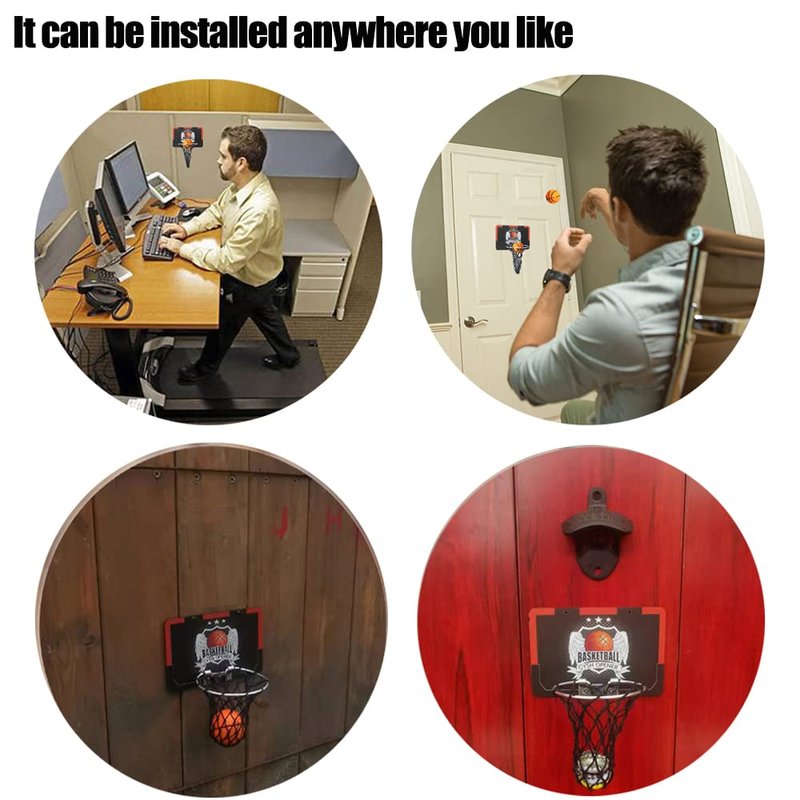 『Easy to install』 The products you buy mini basketball hoop , It can be fixed anywhere with screws and 3M double-sided tape. You can put the basket in front of your desk. When you're upset about work, shoot and relax! It can be installed wherever you like.🏀