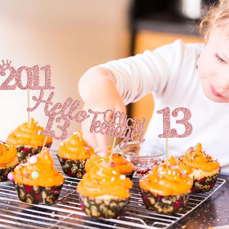 - 💕These rose gold glitter 13 Cupcake Toppers are so cute and good for 13th birthday party, 13th anniversary party, official teenager theme party cake decoration. They can make your cupcake more attractive and bring the fun to your party. You can also apply them for ice cream, fruits, cookies and other desserts.