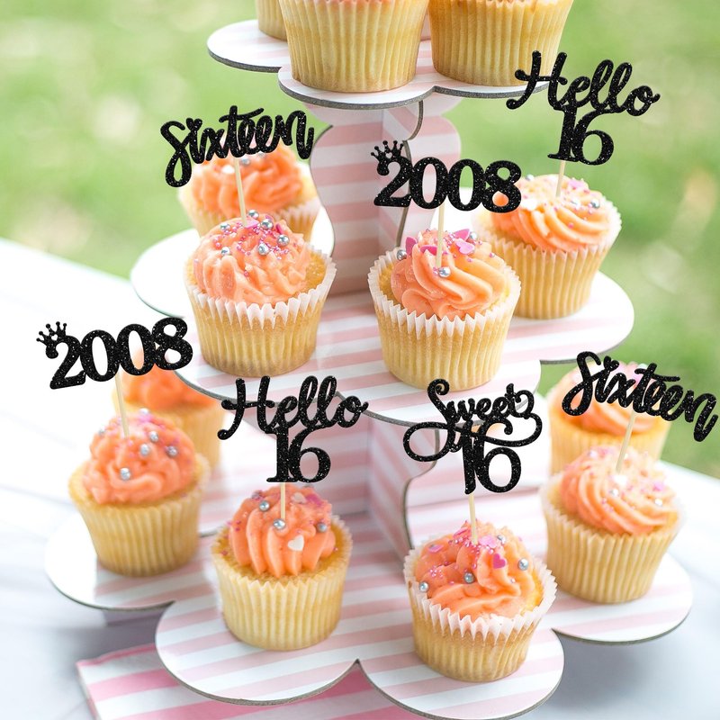 - ⭐Black 16th Birthday Cupcake Toppers are so cute and good for 16th theme birthday parties, 16th anniversary parties, since 2008 theme party or other party celebrations. Make any plain looking cake creative.