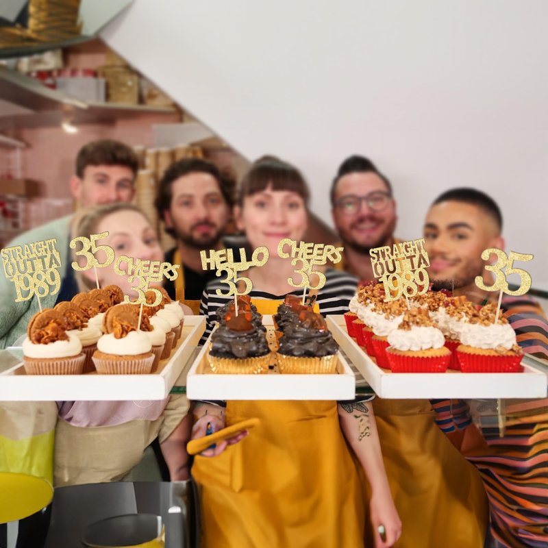 - Package included: 24Pcs 35th Birthday Cupcake Toppers. Comes with assembled, so you can insert into your cake directly, which make your cake more interesting.
