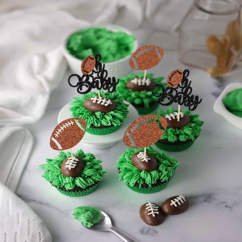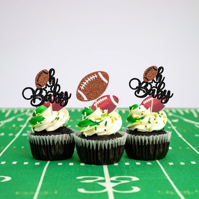 - 🏉🏉Rugby Oh Baby Cupcake Toppers are so cute and good for oh baby theme party, rugby ball sports theme part, baby shower theme party, gender reveal theme party, kids birthday theme party cupcake decorations. They can make your cupcake more attractive and bring the fun to your party. You can also apply them for ice cream, fruits, cookies and other desserts.