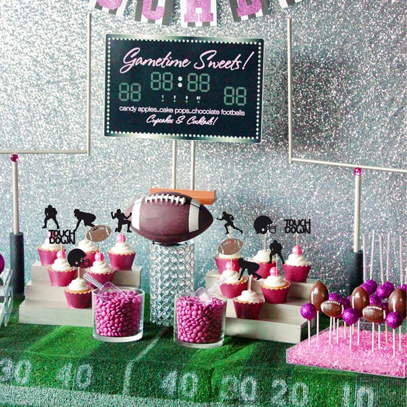 - 🏉These glitter Black Rugby Ball Cupcake Toppers are so cute and good for rugby ball theme party,football theme party,baby shower party, kids birthday party cake decoration. They can make your cupcake more attractive and bring the fun to your party. You can also apply them for ice cream, fruits, cookies and other desserts.