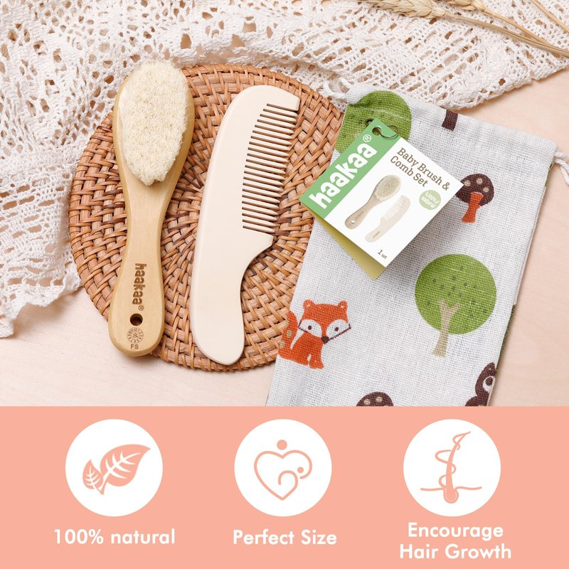 - Wonderful Baby Shower/Registry Gift: Our newborn hair brush comes with a beautiful carrying pouch, and the ergonomic handle design is comfortable for your baby to hold. Increase your baby's confidence and independence by letting them learn to brush their hair themselves! At Haakaa, we are 100% committed to creating safe, stylish, practical, and sustainable products for babies and moms, because we know how important it is to choose the right baby products for your baby's health.