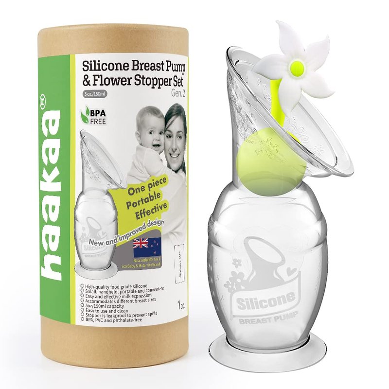 - Gen.2 haakaa Manual Breast Pump Collector- 4oz/100ml Breast Pump with Suction Base. Additional Suction base is designed to prevent any accidental falling or knocking down. The accessory haakaa breastpump flower stopper is available in any haakaa breast pump hand pump. Keep fresh and no leak of any drops.
