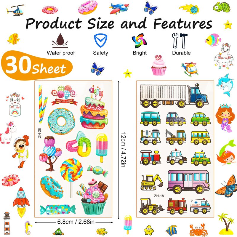 - Variety of tattoos stickers for kids: 300+ kids tattoos set. Temporary tattoos include space, dinosaurs, animals, butterfly, fish, candy,car etc. The rich content provides hours of creative fun and subtly influences children's imagination and creativity