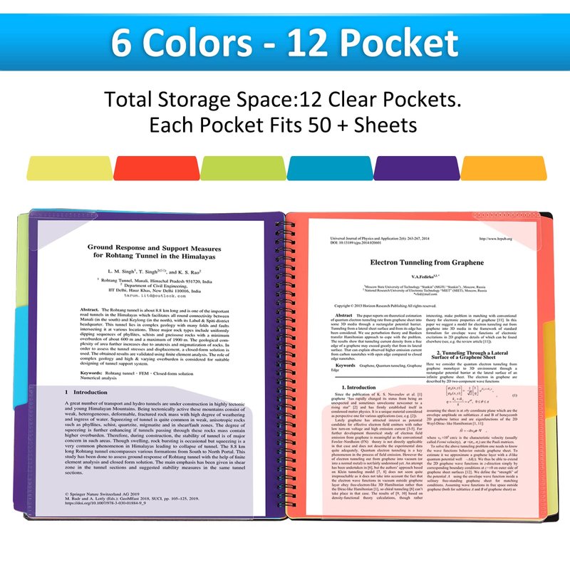 HABGP 12 Pocket, 6 Subject, Spiral Project Organizer with 6 Dividers, Customizable Front Cover, Erasable Write On Tabs in Assorted Colors