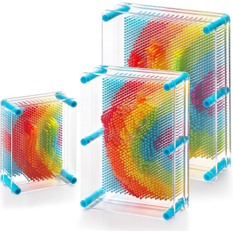 Hacaroa 3 pack pin art toy with rainbow plastic pins, perfect for exercising color recognition. And your kids will love the colorful pin art sensory toys! It will give you a lot of entertainment. Just enjoy happy with your friend and family members.