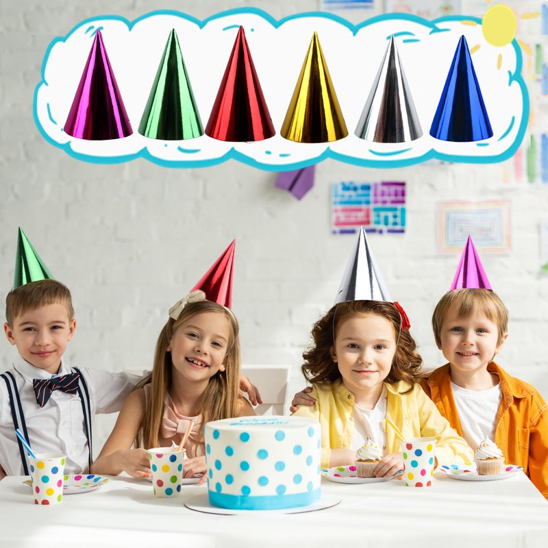 - Eye-catching Design: this birthday party hat features a unique tapered design and bright colors to make you stand out from the crowd. The metallic foil decorative effect adds a sparkling sheen to the surface, making it eye-catching and perfect for creating a cheerful atmosphere at any party