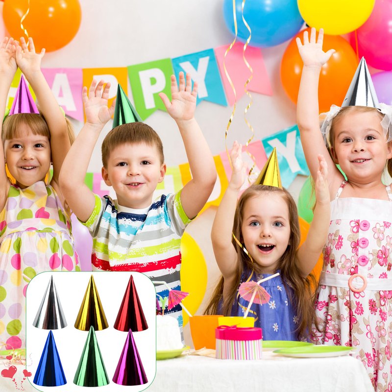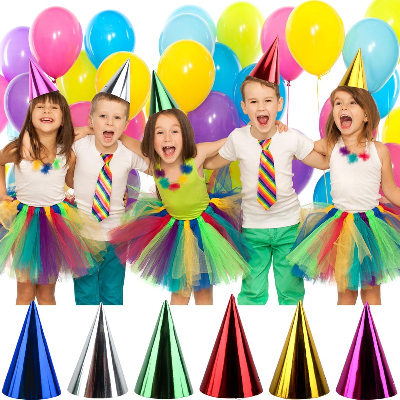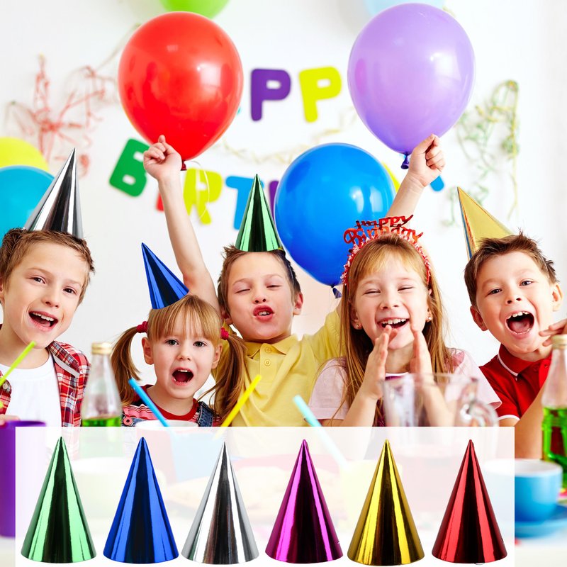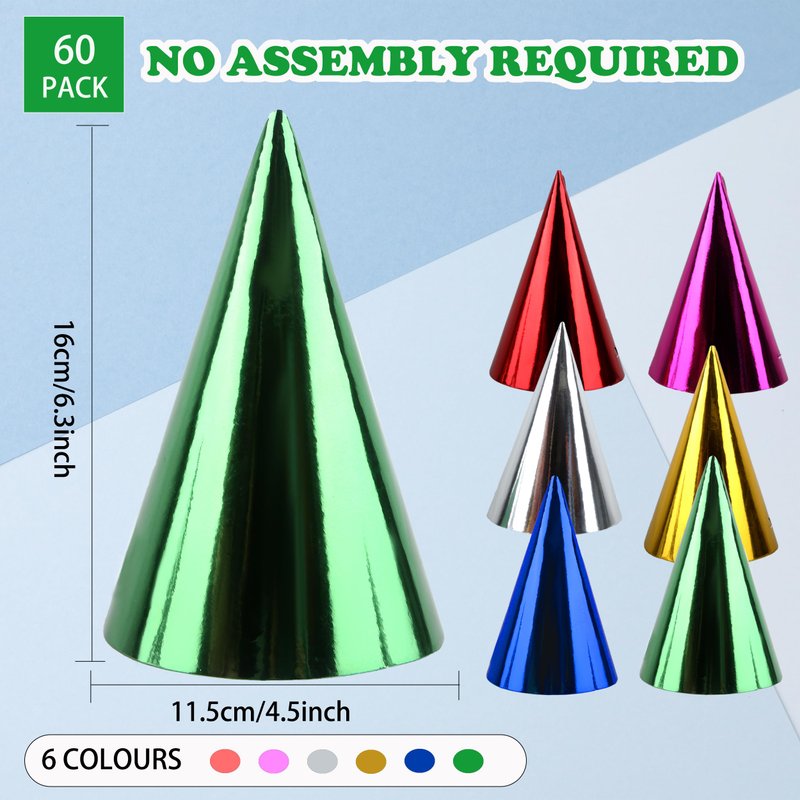 - Package includes: you will get 60 pieces of birthday cone party hats in 6 different colors: green, gold, red, blue, silver and rose, 10 pieces of each color. The quantity and colors are enough for you to choose the color you like to bring to the party, or share with your friends and family