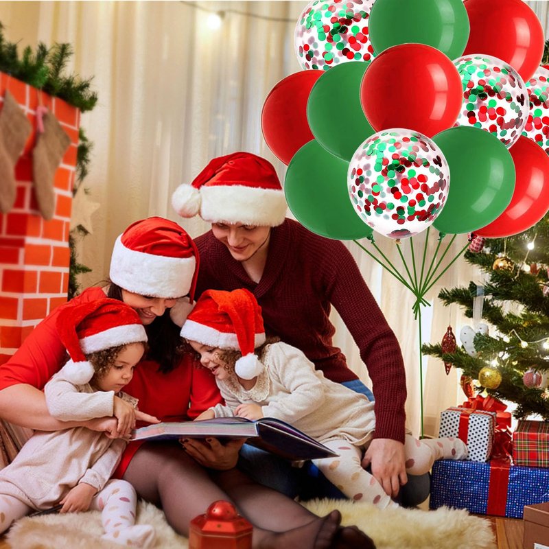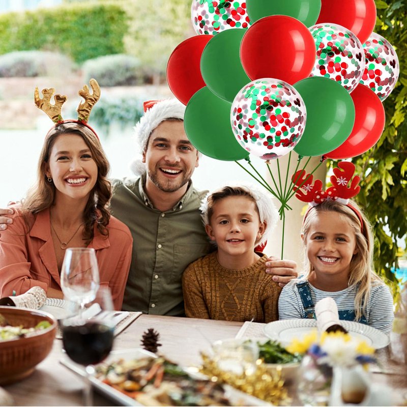 HADCKJA Red Balloons Green Balloons Confetti Balloons Latex Balloon for Christmas Party Supplies Decorations Birthday Decorations Wedding Anniversary Decorations Shower Decorations 12Pcs