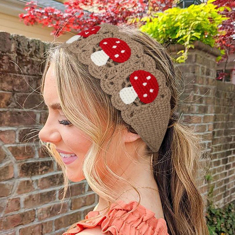 HAIMEIKANG Hippie Hair Bandanas Headbands for Women Boho Headband Knit Hair Bands Floral Head Wrap for Girls (mushroom)