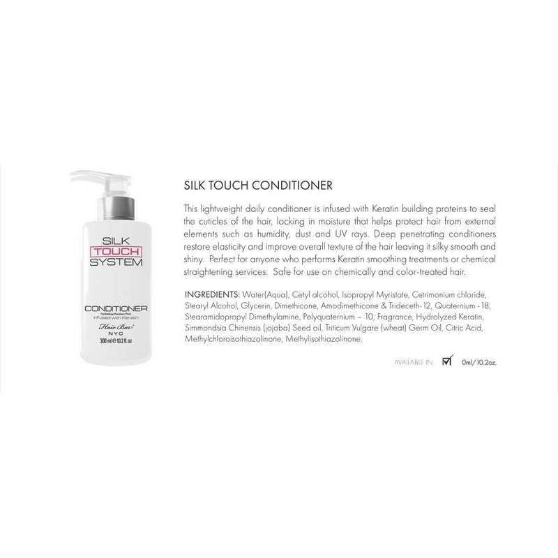Hair Bar NYC Silk Touch System Conditioner, Lightweight Anti Frizz Keratin Conditioner Treatment infused with Biotin/Anti -Thinning (10.2oz 300ml)