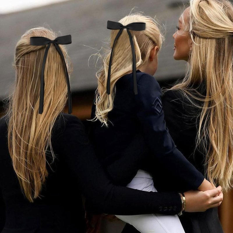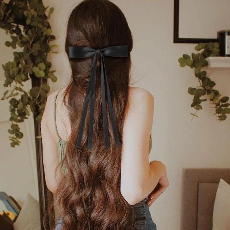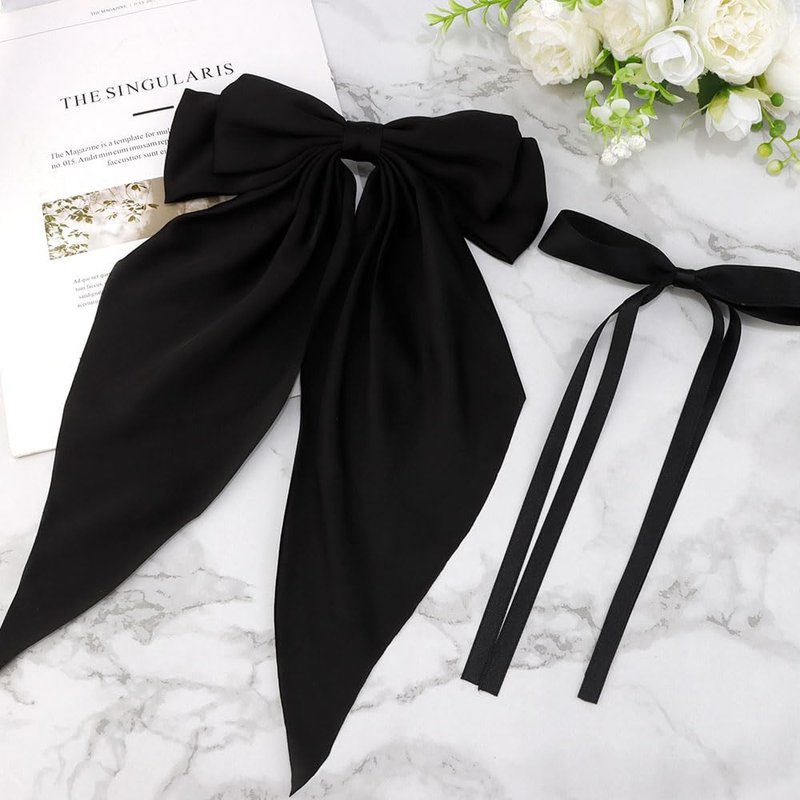 Hair Bows for Women Girls, 2 PCS Silky Satin Bow Hair Clips Ribbon Hair Bow Clips Bowknot with Long Tail Black Hair Bow Cute Hair Accessories, 2 Sizes