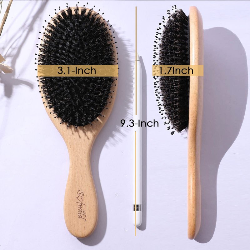 - HELP PROTECT YOUR HAIR: The combination boar bristles and nylon pins has 340 bunchs take better care of you hair, the boar bristles distribute your hair’s natural oils and removes the dust, oil, dandruff and dirt say goodbye to frizzy and uncontrollable hair days perfect for creating and maintaining healthy hair