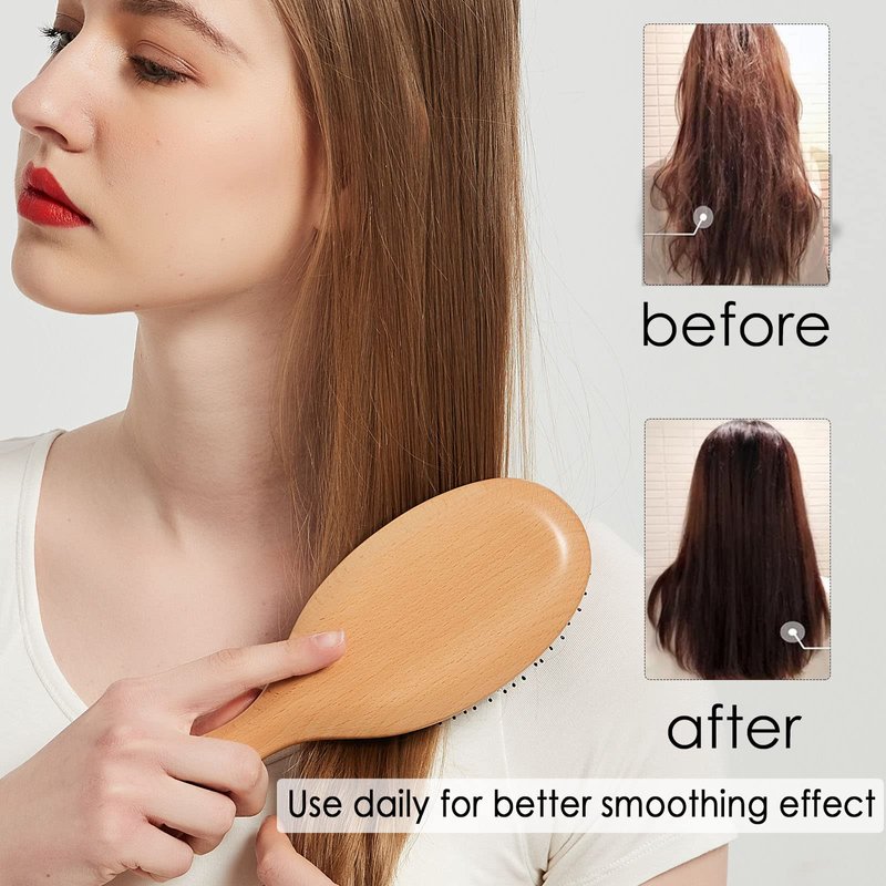 - EXQUISITE CRAFTSMANSHIP: The wooden oval hairbrush handle is ergonomic and is made out of 100 percent premium natural beech handmade, most definitely less stress on the hands/wrists/arms, easier combing through your hair, well material built and it will last the test of time