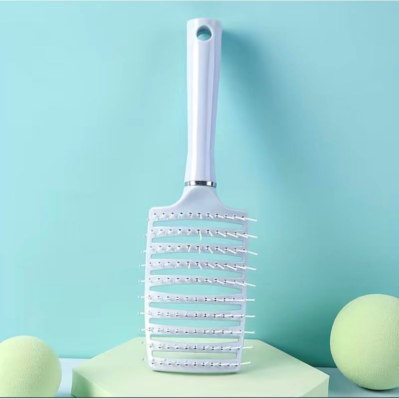 Nylon bristles help detangle thick hair and massage scalp, you can say goodbye to tangles, tearing & pulling while brushing your hair. Rubber stud handle easy to handle, not easy to slip