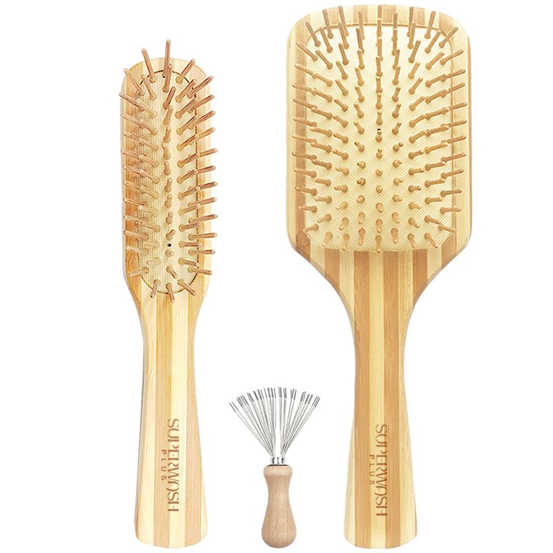 - Unique Design & Eco-friendly – You will get 2 pieces bamboo hairbrush and 1 piece brush cleaner tool. These beautiful hair brushes are made of natural bamboo, even the bristles are 100% bamboo. Not only is it a more sustainable way for the environmental protection by being plastic free, but also a better option for a natural and comfortable using experience while it functions exactly like conventional brushes, perfect for all hair types - dry, straight, coarse, thick, wavy, and curly hair.