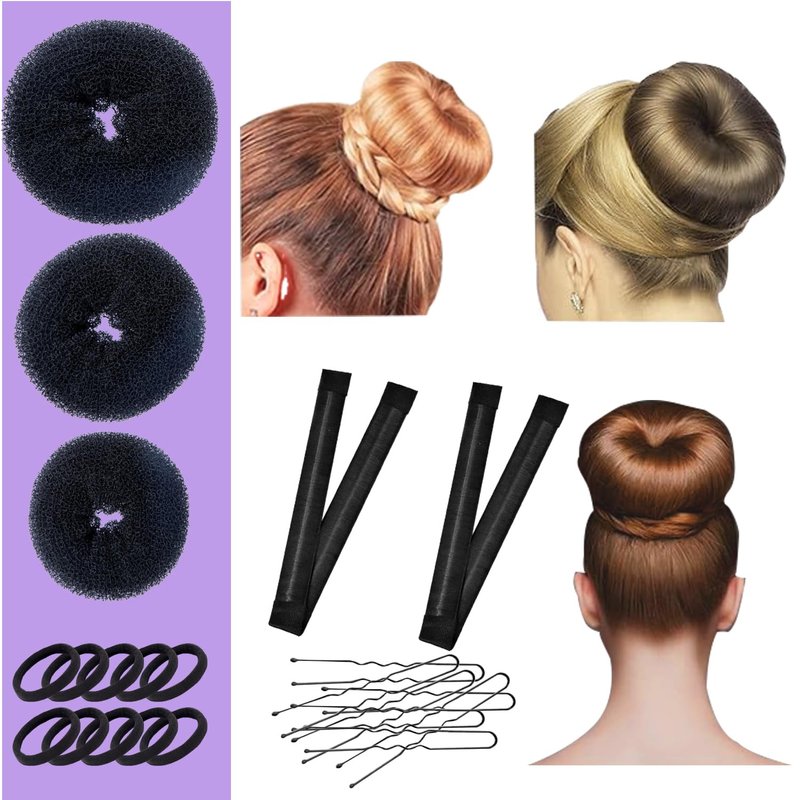 - Hair Bun Shaper Set, include 3 pieces Bun Donut, 2 pieces Bun Maker, 10 pieces Bobby pins and 10 pieces Elastic Bands for Women Kids Hair Bun Maker Kit. Different sizes or different hairdressing needs, this set keeps your hair in order and helps you create your hairstyle.