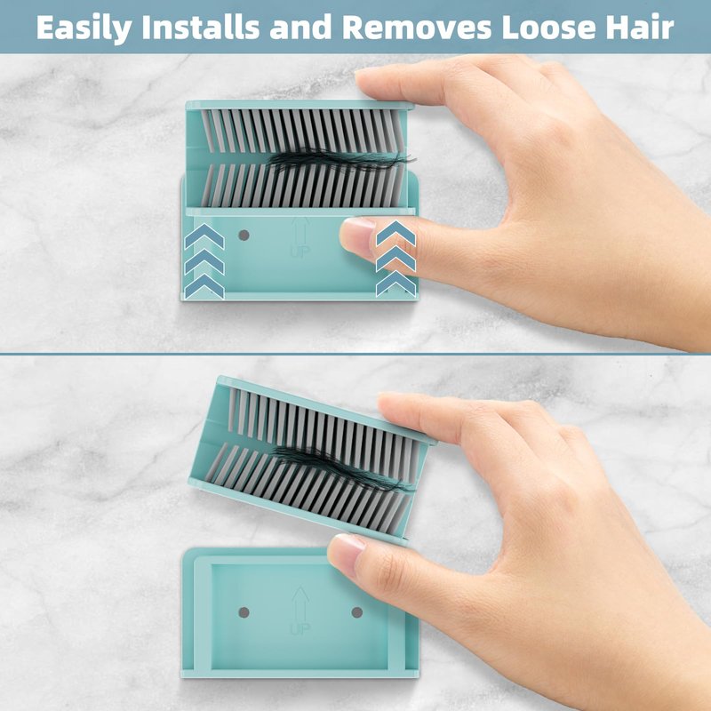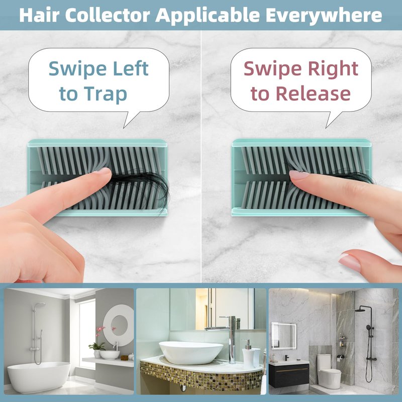 - 【EASILY TRAP AND REMOVE LOOSE HAIR】During the bath, there will always be loose hair that falls out of the scalp. The hair collector can collect and remove loose and messy hair easily, gather the loose strands into a ball. Swipe your fingers left through the bristles to trap the hair. Swipe right to remove the hair.