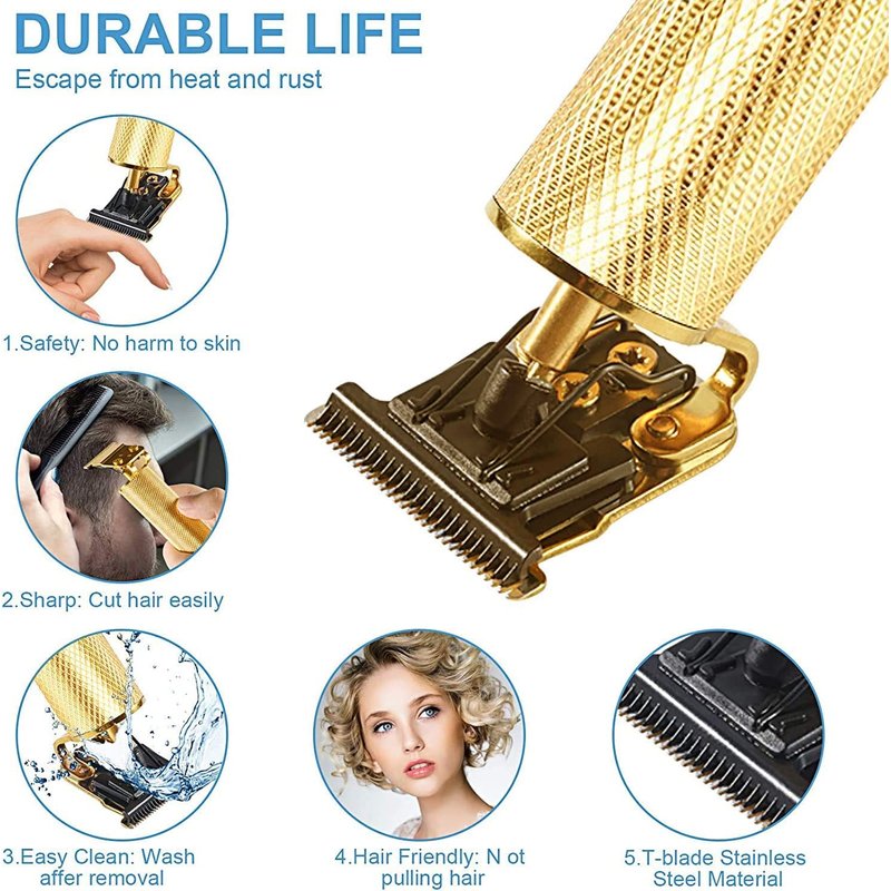 - 【T-BladeTrimmer Design】This hair trimmer adopts professional T-shaped blade design, and the fixed T-shaped blade can realize gradual hairstyle. Titanium, stainless steel, R-shaped design with sharp angle, does not burn the skin due to angle problems, sharp and wear-resistant.