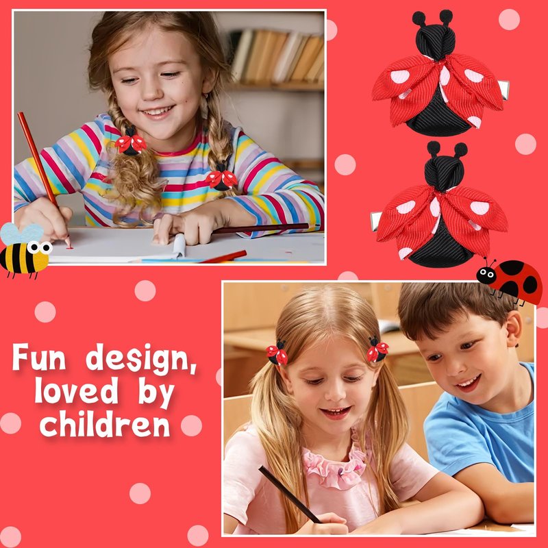 - The bobby pin is suitable for a variety of occasions, including class reunion, school outing, classmates prom, learning exchange, etc. The ladybug hair bow clips can be unique and shining one.