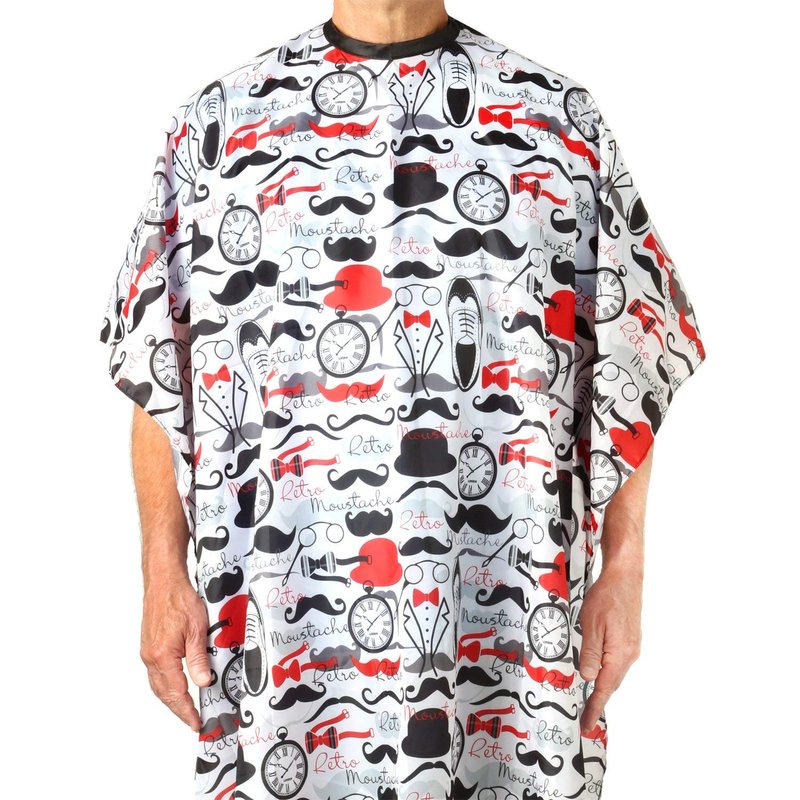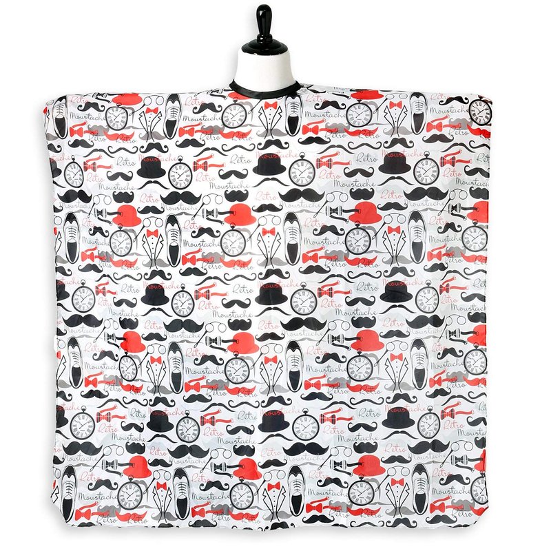 • Barber Cape - Hair Stylist Cape with red retro mustache design will protect your clothes from hair clippings.