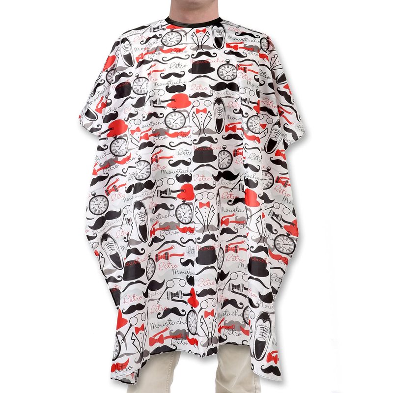 - Barber Cape - Hair Stylist Cape with red retro mustache design will protect your clothes from hair clippings.