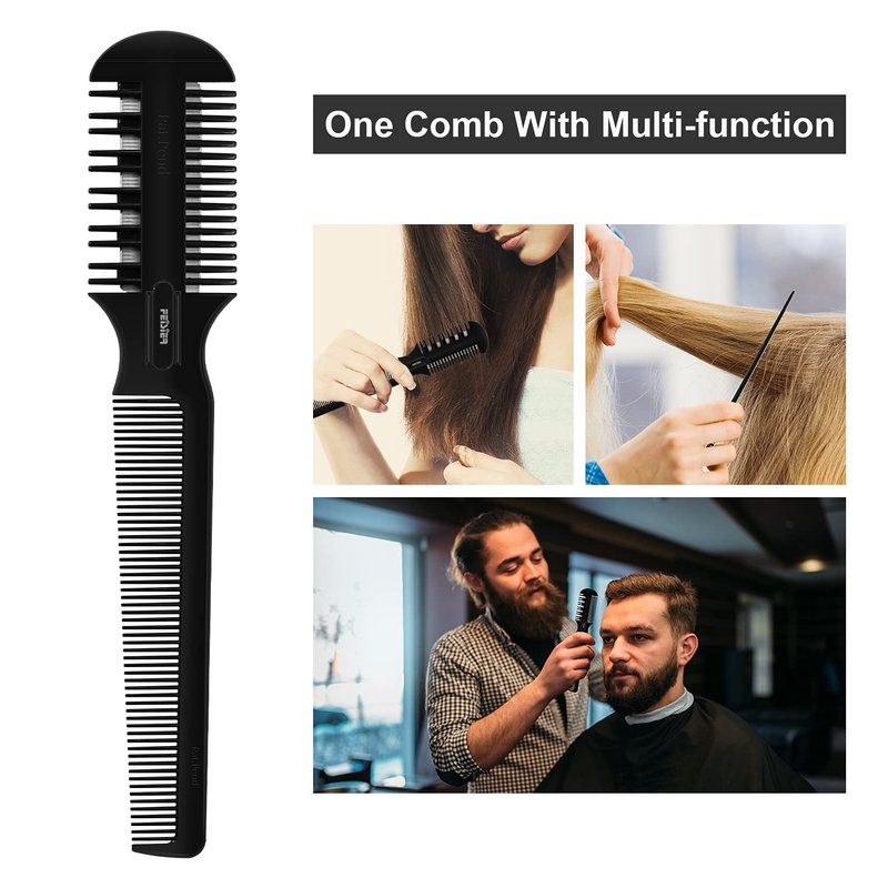 - 【DOUBLE EDGE RAZOR BLADES】: The razor hair cutting comb with double side blades is great for thin and thick hair cutting and hair style.