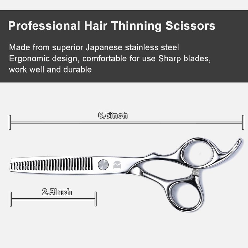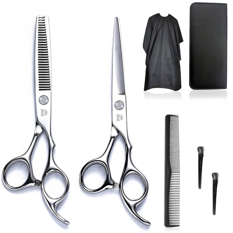 - The packaging includes: Our hair cutting scissors set includes all the accessories needed for hair cutting, 1 piece of hair cutting scissors; 1pc Hair Thinning scissors; 1pc leather storage bag; 2pcs hair clips; 1pc haircut cape. All accessories undergo strict inspection and testing.