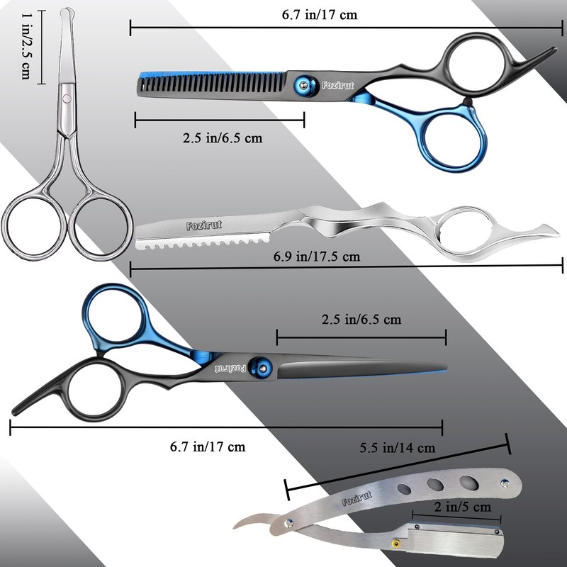 - ✂️🪒: PREMIUM STAINLESS STEEL: Fozirut professional hairdressing scissors and hair cutting razor are made of high-quality stainless steel. Hair cutting scissor with extremely sharp blades for clean cut, evenly trim hair with ease, can trim wet and dry hair, no worry about hair split end.