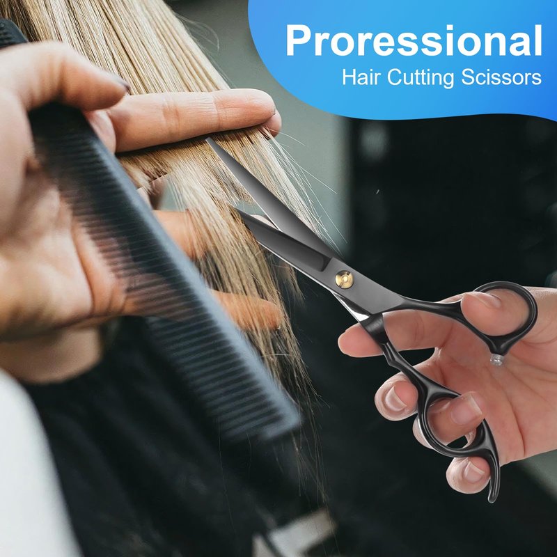 - 【Premium Quality Hair Scissors】: Crafted from top-grade titanium coated 440C Japanese stainless steel, these scissors offer unmatched durability, comfort, and precision for both wet and dry hair cutting.