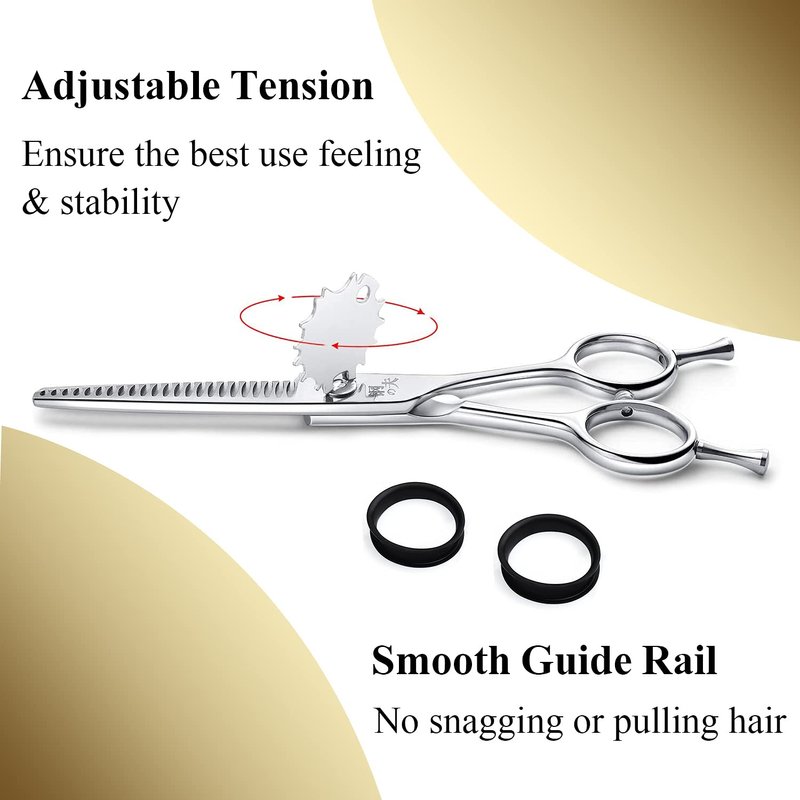 - ✄PREMIUM QUALITY - Made of high-quality Japanese stainless steel and tempered with precise blades and hand-sharpened edges, our hair cutting/thinning scissors is a good choice to trim or texturize hair for stylish looks.