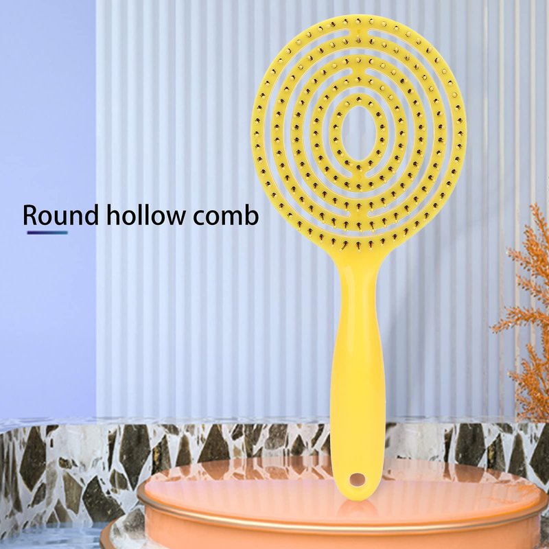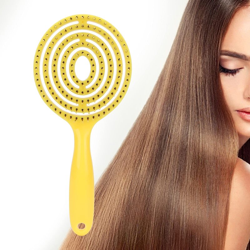 Hair Detangling Brush - Hair Straightening Comb Wet & Dry Hair Brush Round Head Straightenning Detangler Brush Comb Hair Styling Comb Scalp Cleansing Brush for Curly Hair (Yellow)