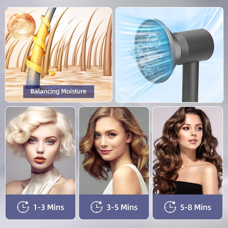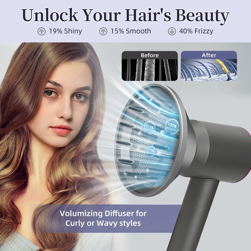 【Package Contents】:1pc Supersonic attachement - Diffuser,1pc gentle air attachment,1pc salon styling concentrator nozzle .It adopts magnetic design,easy to install and remove, and you can easily replace old or damaged hair dryer nozzles.