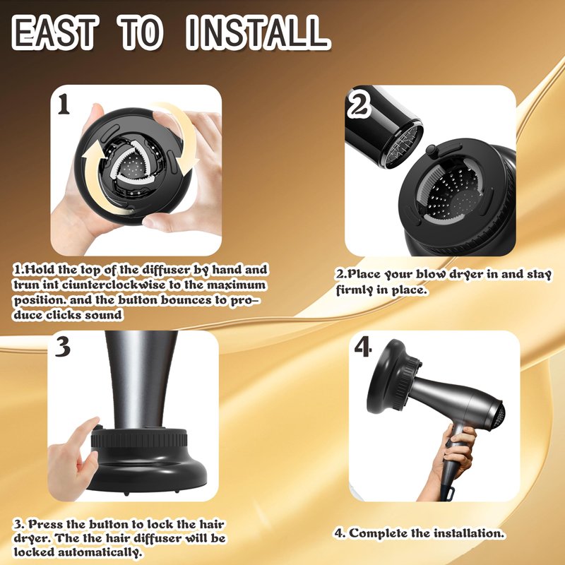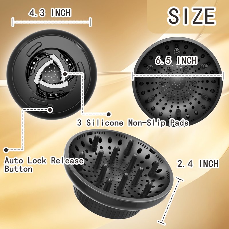 The BLOLYO Diffuser hair dryer is thoughtfully designed with lock button, can be adjusted and fit 90% hair dryers on the market for hair dryer with nozzle diameter of 1.4 inch - 2.4 inch. This hair diffuser compatibilityamplify the natural beauty of your curls, giving them definition and bounce. Whether you have wavy, curly, or coiled hair, our diffuser attachment for hair dryer are the ultimate tool to achieve your desired look.