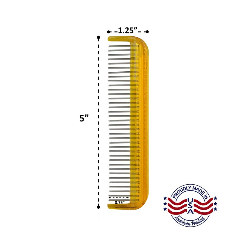 Original Hair Doctor's 5" Comb reduces hair loss and breakage with silky smooth stainless- teeth continuously rotate. Rotating teeth prevents hair from wrapping around the pin which prevents hair from stretching and breaking. Rounded tipped teeth rub and massage the scalp, stimulating circulation and promoting healthy hair and growth. Hair Doctor comb are superior for detangling wet hair because hair is most susceptible to damage when wet. This is due to the hydrogen bonds in the hair that are broken when wet and reformed when dry. A scientific study concluded that rotating teeth are gentle to hair, much more so than conventional combs because the rotation of teeth combined with up and down movement, greatly reduces the pulling force that causes hair to stretch and break. Hair Doctor significantly reduces hair loss and damage especially when combing out wet hair. Hair Doctor uses solid stainless steel teeth that will never tarnish and can be safely disinfected in salon solutions to prevent the spread of dandruff. In addition, teeth are securely sonic welded in the spine which prevents them from coming loose or falling out, keeping children and pets safe from swallowing loose pins. Made in USA. manufactured with precision care in Hoffman Estates, Illinois. Original Hair Doctor News! Hair Doctor invented the original rotating tooth Combs and Brushes to prevent hair loss and breakage and keep hair healthy and beautiful. Original Hair Doctor Combs have sold for more than 16 years and have been manufactured and hand assembled in Hoffman Estates, Illinois by a superior team of veteran employees who love what we do. Over 6 million Combs have sold globally. Still the favorite Comb in Asia. Please contact us anytime and let us know your favorite comb. Also tell us your favorite color so we can build it in the future. Thank you for using Hair Doctor to keep your hair healthy, beautiful and growing.