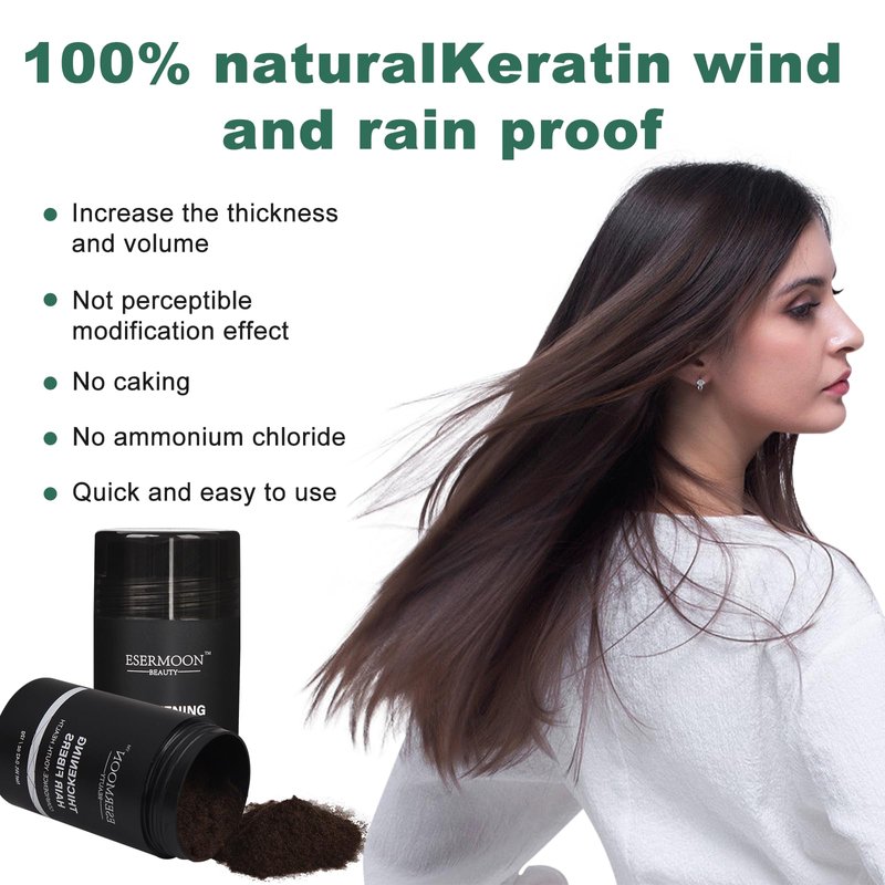 - ➤【SAFE FORMULA】-Crafted from plant fiber and 100% natural keratin, ESERMOON hair-increasing fiber is designed to be gentle on the scalp, avoiding pore clogging and ensuring a healthy application.