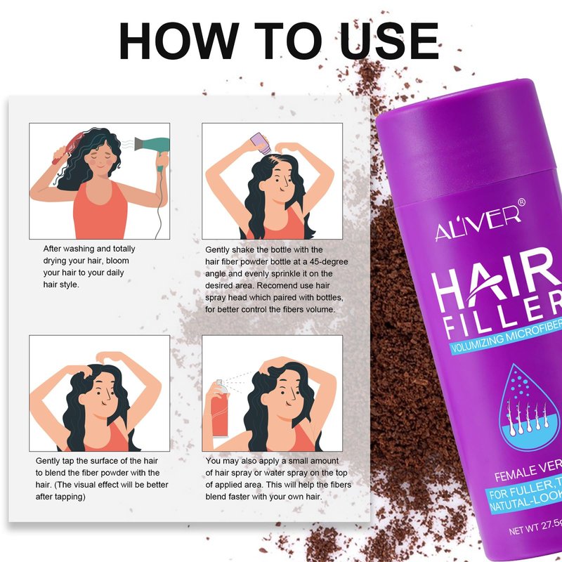 - Increased hair volume: Women with thinning hair or areas of sparse hair can use hair building fibers to instantly increase the volume and density of their hair. By filling in gaps and adding thickness, the fibers create the illusion of fuller hair, which can enhance overall appearance and confidence.