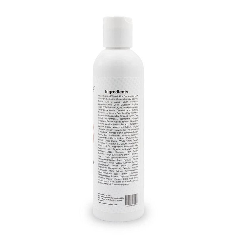 Hair loss can be difficult, and that's why Hair Labs has created a formula to help you recapture the magic of a fuller head of hair. Our Hair Restore Shampoo & Conditioner Set is chock full of nutrients to invigorate your scalp and promote healthier, thicker hair growth. Our hair loss shampoo and conditioner utilize a number of clinically proven ingredients that help block thinning patterns and strengthen hair, including green tea extract, yerba mate, cayenne pepper, argan oil, black cumin seed oil, and tea tree oil for hair, along with aloe vera gel for soothing. Unlike a limited mens thickening shampoo or hair regrowth treatment for women, our powerful solution works on everybody, because we recognize that anyone can struggle with thinning hair. Our amazing hair loss products have no side effects and are free of parabens, sulfates, and other harsh chemicals, and is never tested on animals. It's even safe enough for chemically treated or colored hair. For hair that feels stronger, looks thicker, and is all around healthier, Hair Restoration Labs has your back—and your head.