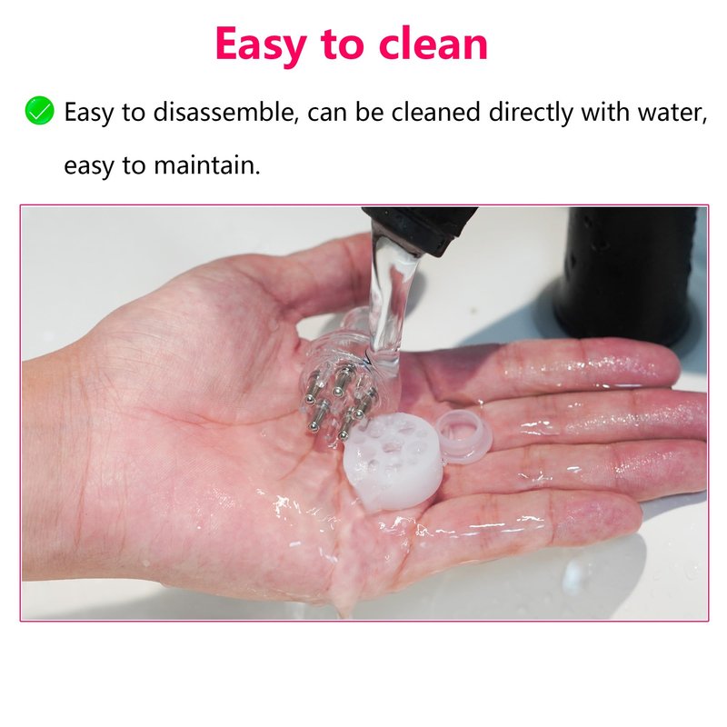 - Design: The drain holes are elastic spherical teeth, and when in contact with the scalp, the fluid is discharged