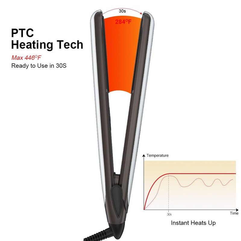 - PTC Instant Heater and Adjustable Temperature: The hair styling iron can be quickly heated to the lowest temperature 284℉ in 30 seconds to save time; 10 heating settings up to 446℉ with digital display for clear reading and give you total control in choosing the optimum temperature for different hair types to reduce damage to hair