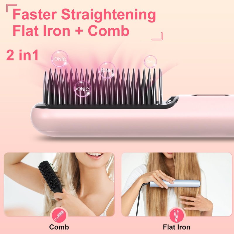 - Compact and Portable Design - With its sleek and lightweight design, this cordless hair straightener brush is perfect for travel and easy to carry. Stay effortlessly stylish and ready for any occasion, from busy days to glamorous nights out.