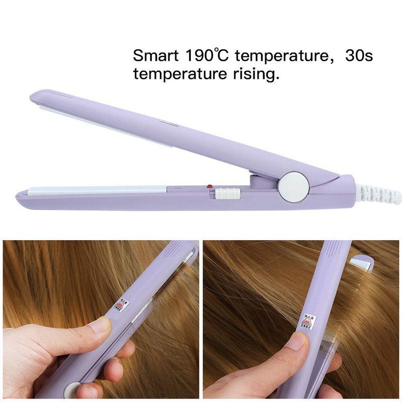 - Flat Iron Design: Mini flat iron heats up to 190°C for straightening and curling hair.