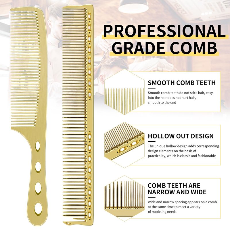 - 2.Space Aluminum:Made of Space Aluminum, eco‑friendly, no harm to hair and scalp.not easy to break, lightweight and durable can serve for a long time use. Good functions: these styling combs are durable and flexible, the sturdy teeth of cutting comb could avoid pulling, tangling or damaging hair, easy to hold and operate, can reduce the pressure of wrists
