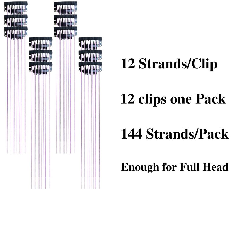 Hair Tinsel Fairy Tinsel Hair Extensions Clip in Glitter Purple Hair Tinsel Heat Resistant Christmas Halloween 20 inch 12 Pieces