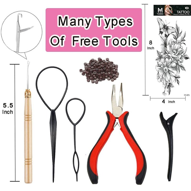 - Hair Tinsel Kit Package 12 Colors 2760 strands tinsel hair extensions, each Color Has 230 Strands, 1 piece crochet, 1 piece tweezer, 100 pieces micro silicone link rings beads, 1piece hair clips, 1pieces tattoo sticker, 2 Pairs Hair Tail Tools as a gift. Definitely worth it for the money.